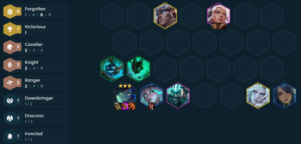 With this comp, players will want to stay level four and five for as long as they can to find three-star Vayne, Hecarim and Thresh form the basis of the board. From there, add another Ranger unit and a strong Cavalier or Knight frontline and this should stabilize the comp. But much like the Draconic comp, this board may struggle in the early game.