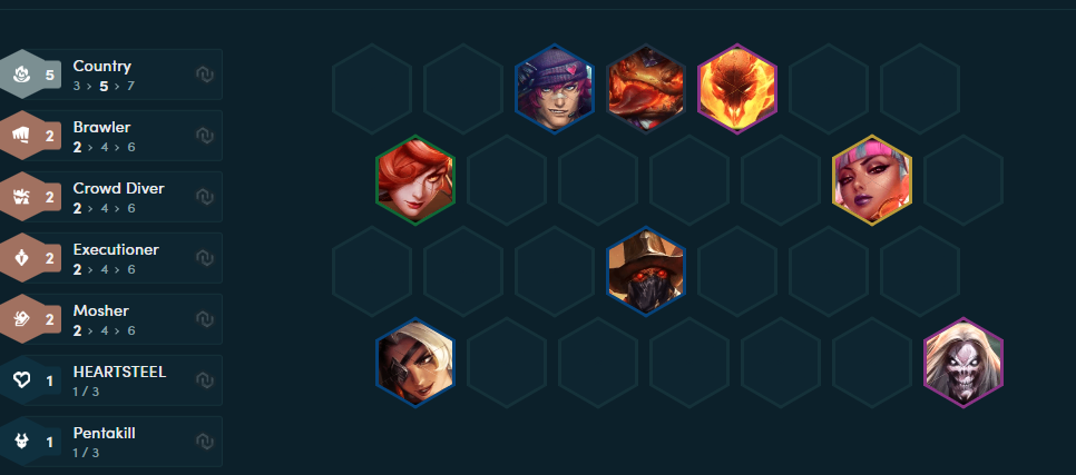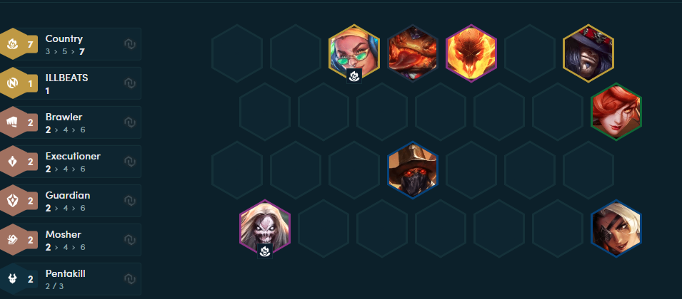 Samira is a popular primary carry and works well with Country and Executioner. Players can opt to run either three Country and four Executioner or five Country and two Executioner. When running only two Executioner, Urgot is a solid secondary carry with the Mosher trait activated at the breakpoint of two.