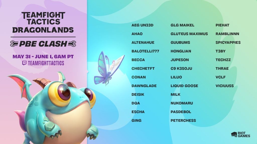 Players competing in the PBE Clash TFT Set Seven tournament include content creators and past World Champion qualifiers and winners. A total of 32 players will compete in the event over the course of two days, providing early bragging rights for their represented regions heading into the official launch of the Dragonlands set.