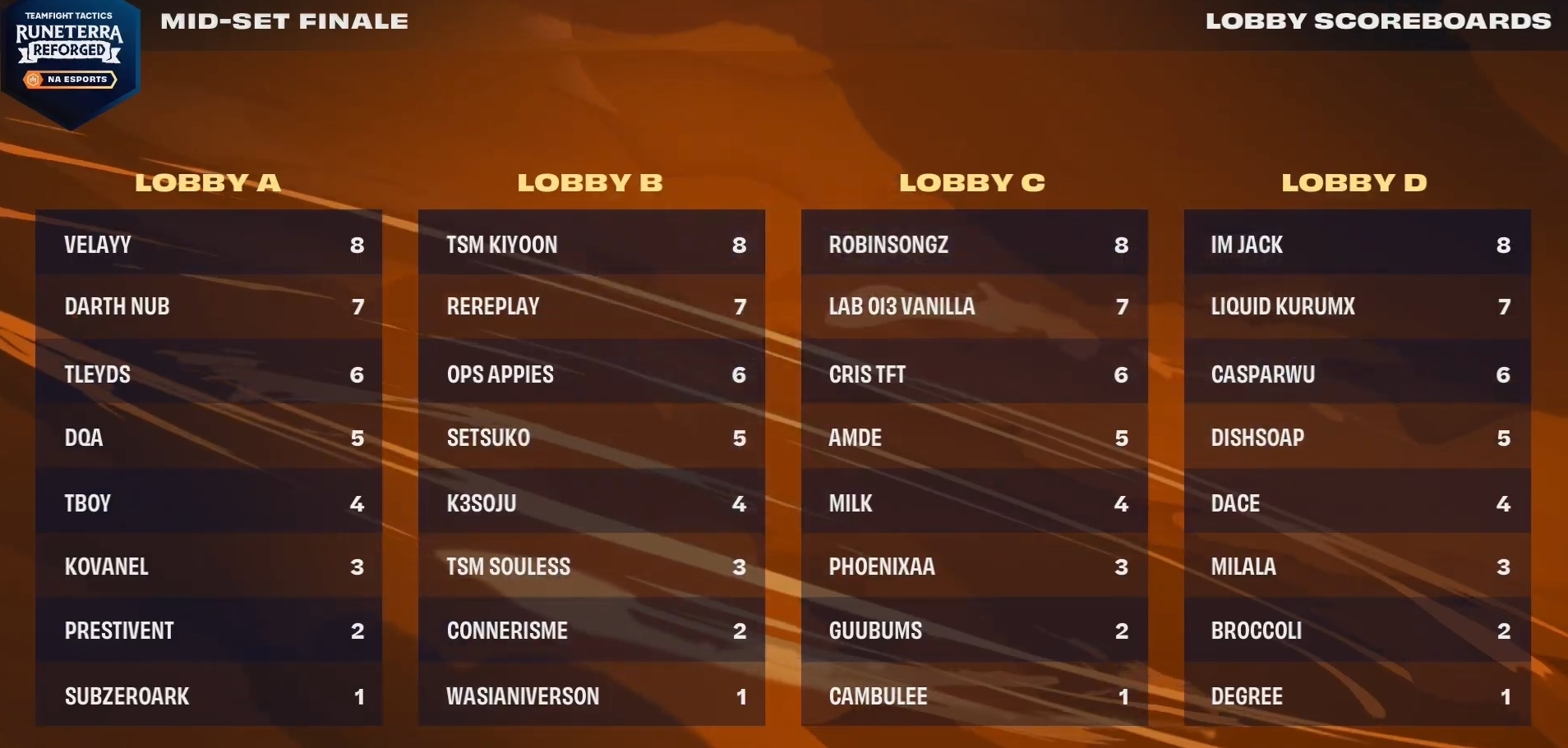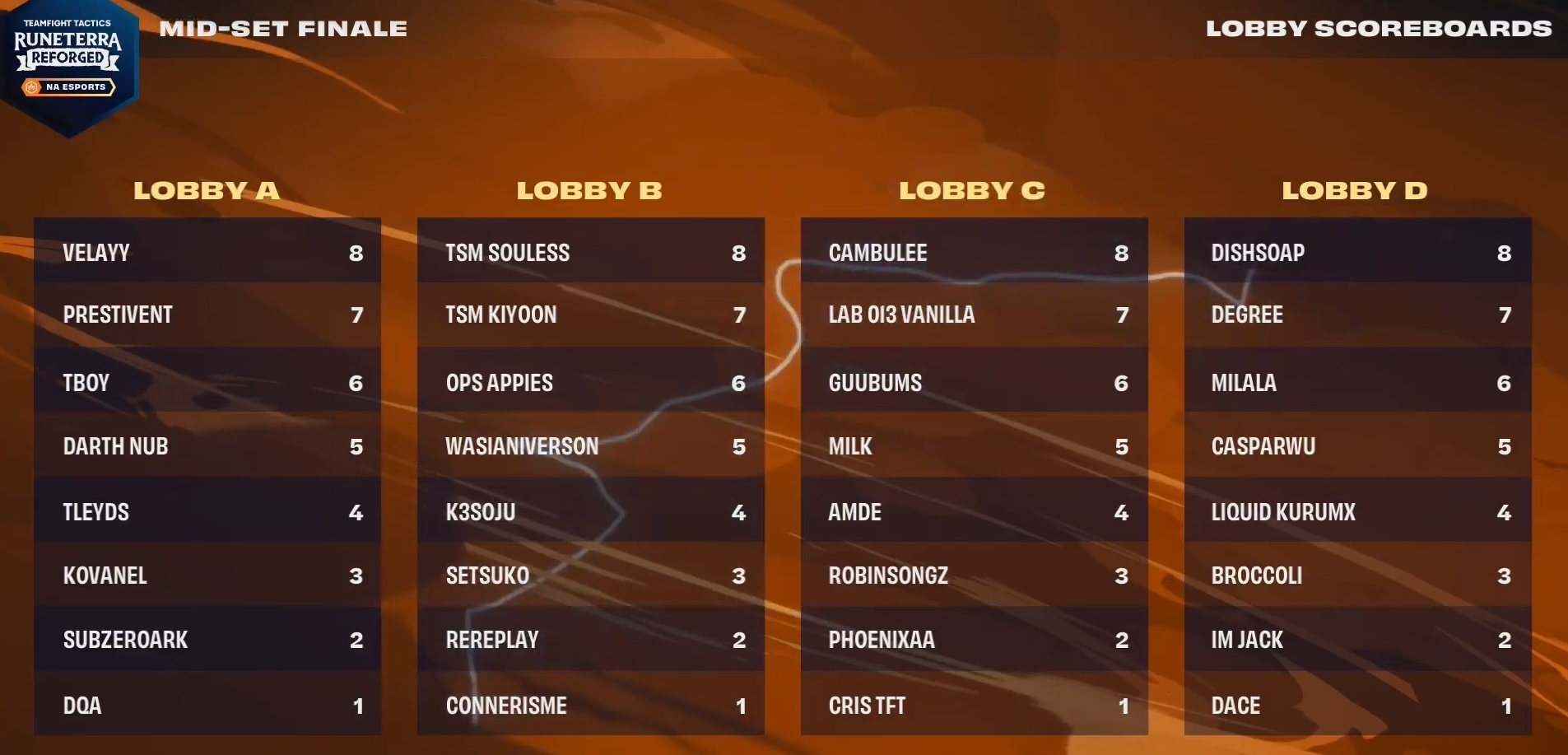 Aug. 25 TFT Set 9 NA Mid-Set Finale standings and scores