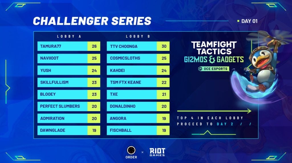 Here are the eight players that made their way through day one of the TFT Challenger Series event: