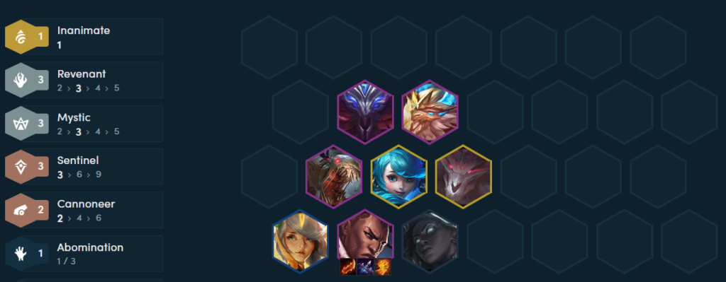 Because Lucian is currently such a high DPS world-beater of a champion, he doesn’t necessarily require the high vertical trait building to support him. Just three Sentinel and two Cannoneer will be enough to help him carry. This frees up a lot of board space for utility champions that will help to give Lucian space and time to pop off. Still, one of the highest value front lines available in the game is Revenant with Volibear and Ivern. With the addition of Fiddlesticks to the Revenant trait in Set 5.5, Mystic should be another easy splash trait for this build that will help in lobbies full of AP-reliant teams.