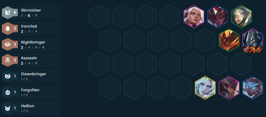 This is the good old Skirmisher composition that has been around since the beginning of Set Five, except that with the addition of Olaf in the mid-set expansion, Skirmishers now have a better one-cost champion to help them during their typically very poor early game. Play this comp if you hit a two-star Olaf, or can play three Skirmishers early on.