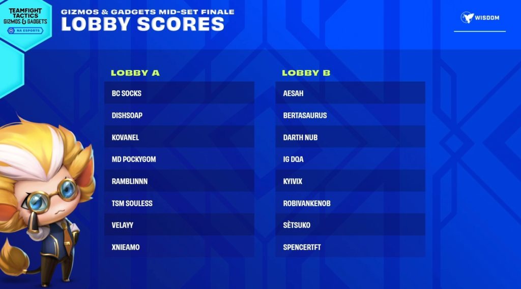 Sixteen TFT players competed over six games, and only eight would advance to the final day. Players were split into two lobbies, with competitors rotating lobbies every two games. Day two of the Set Six Mid-Set Finale contained a healthy mix of veteran tournament players, along with up-and-coming competitors like Aesah and Robivankenob.