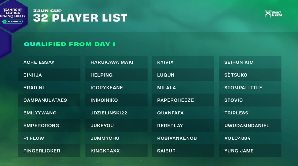 The first day of competition at the TFT Zaun Cup showcased six games of open qualifier play of 128 players, with 32 advancing to day two. Making the cut were veteran players like sètsuko, UWDanmDaniel, Kyivix, EmilyWang, and Campanulatae9.