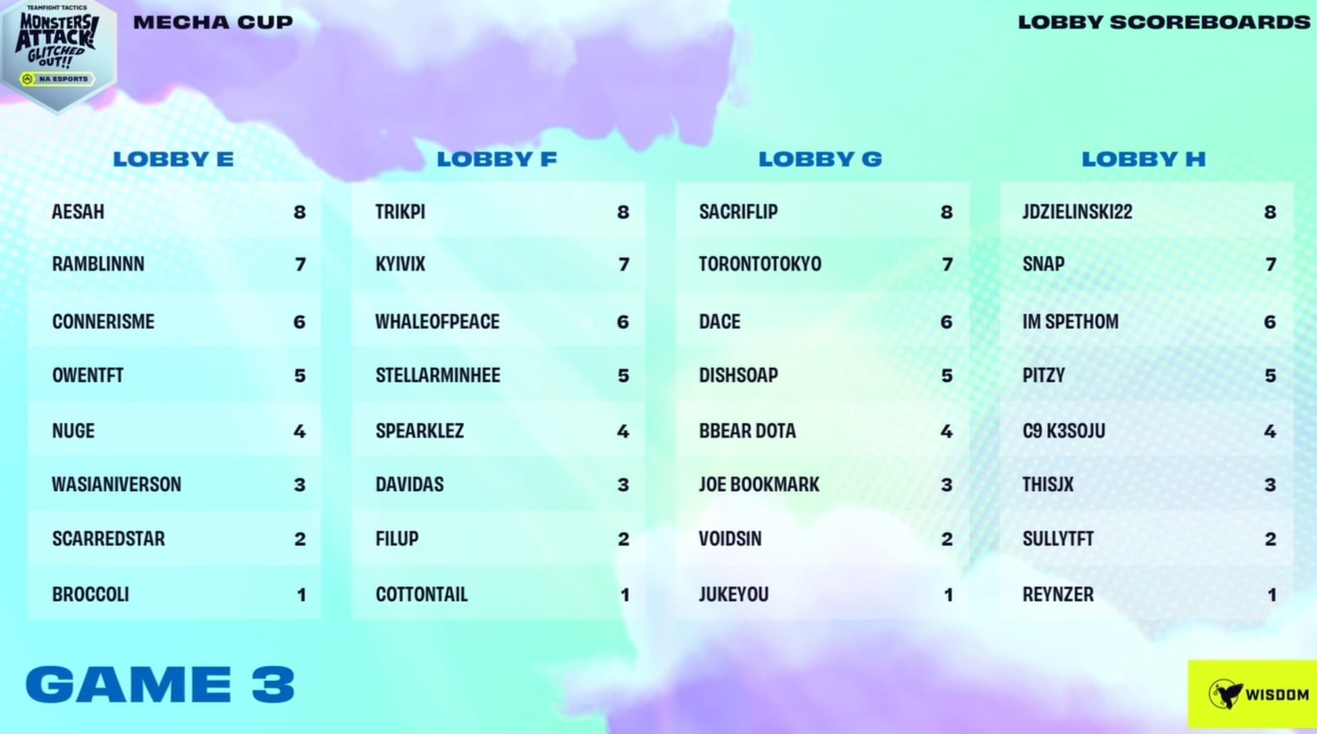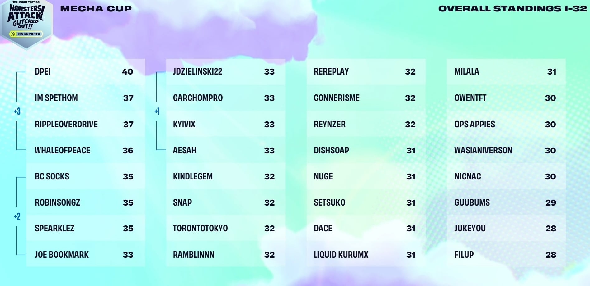 Here were the top 32 TFT players who advanced to the second weekend of the NA Mecha Cup, according to Wisdom.