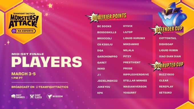 Taking place over the course of three days from March 3 to 5, the North American TFT Mid-Set Finale featured a total of 32 players. Each of the players had earned an invite to the prestigious tournament through a top finish at one of the Set Eight Cup tournaments or through qualifying points that were earned by competing in the Defender and Corrupted Cup tournaments.