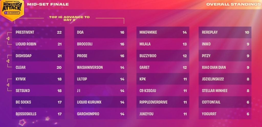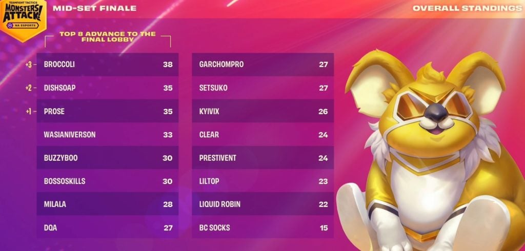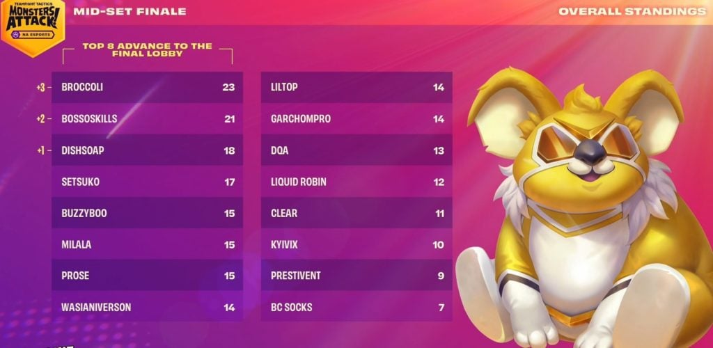 Here were the top eight TFT players advancing to the final day of the Set Eight NA Mid-Set Finale