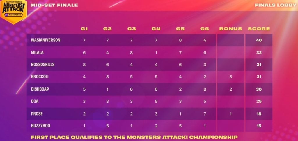 Update March 4 8:10pm CT: All scores and standings at the TFT North American Mid-Set Finale tournament were updated.