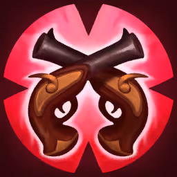 ![]() Elite Duelist | HP: 2,500![]() Big Ego: Your Weapons have Lifesteal. ![]() Small Weaponry: Your Small Weapons deal +18 Damage. ![]() Strength: Your Weapons deal +6 Damage. | ![]() Revolver: Cooldown 3 seconds Ammo Max 6. Crit Chance 20 percent. Deal 20 damage. When you Crit, reload 2 Ammo. (Small) ![]() Powder Flask: Cooldown 4 seconds Reload the item to the right of this 2 Ammo. (Small) ![]() Shoe Blade: Cooldown 6 seconds Crit Chance 30 percent. Deal 20 damage. (Small) ![]() Butterfly Swords: Cooldown 7 seconds Multicast 2. Deal 5 damage. (Small) ![]() Spices: Cooldown 8 seconds Ammo Max 1. Your weapons gain damage equal to your weakest weapon’s damage for the fight. (Small) ![]() Holsters: At the start of each fight, your Small items gain Haste for 1 second(s). (Small) ![]() Knife Set: Cooldown 5 seconds Deal 40 damage. When you use a weapon, charge this 2 seconds. (Medium) |