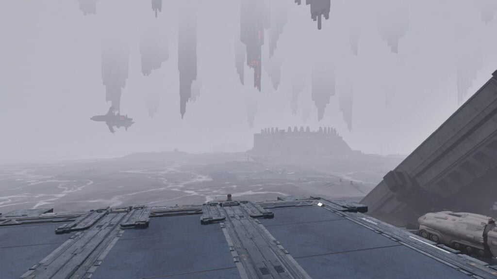 The first location is inside the transport vehicle, next to the Supermassive Receptor dungeon beacon, right at the outpost. As you get close to it, you’ll see the Investigation Point tag on the screen and the prompt to interact with it. It might be difficult to see due to white text, but it’s right at the ramp in the back of the vehicle.
