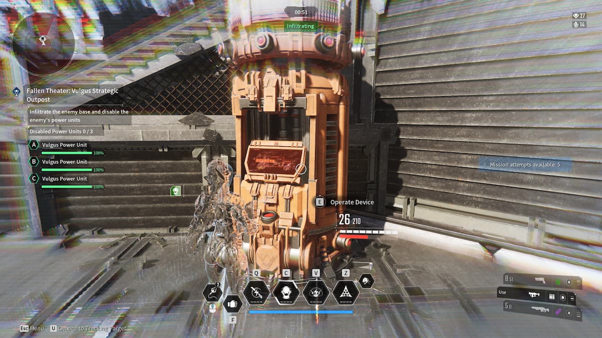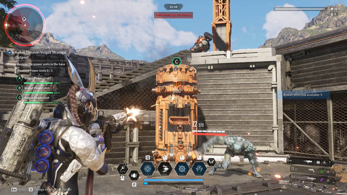 Simply walk in and start shooting enemies to start the mission. Your goal is to destroy three power units at the Outpost (marked with letters A, B, and C). While you can rush in, we highly suggest you kill the trash mobs first because they can overwhelm you, especially on hard difficulty. An easy way to clear all enemies without even shooting them is to use Bunny.