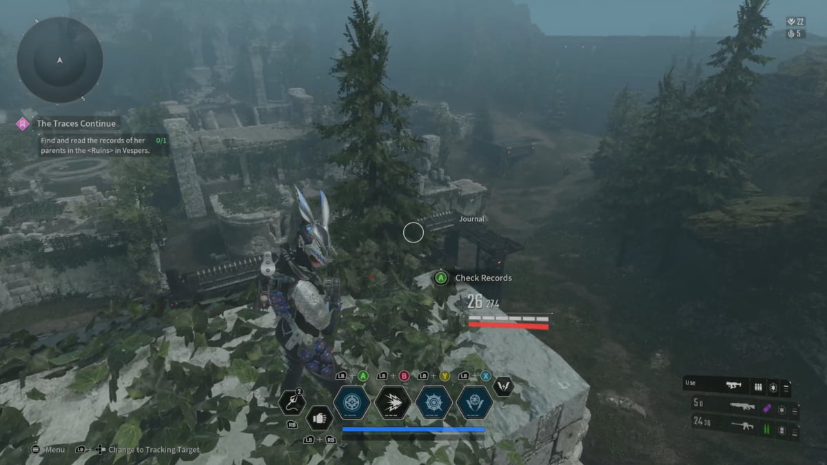 Use the Grapple Hook to climb to the top and head to the edge on the near side to find the Journal. The exact spot is pictured above, but it can be difficult to spot due to the vines and leaves in the area.