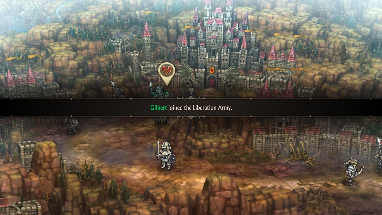 Gilbert is recruited at the end of the Heir to the Dragonlands quest in Unicorn Overlord, but only if Alain convinces his brother Ludwig—now under the name Aramis—to talk with him. This quest is the end of a three-part main quest chain that takes you through Drakenhold, from the southwest to the northeast. This quest is quite difficult, and we recommend you have a few units promoted by this point if you want to barrel through.