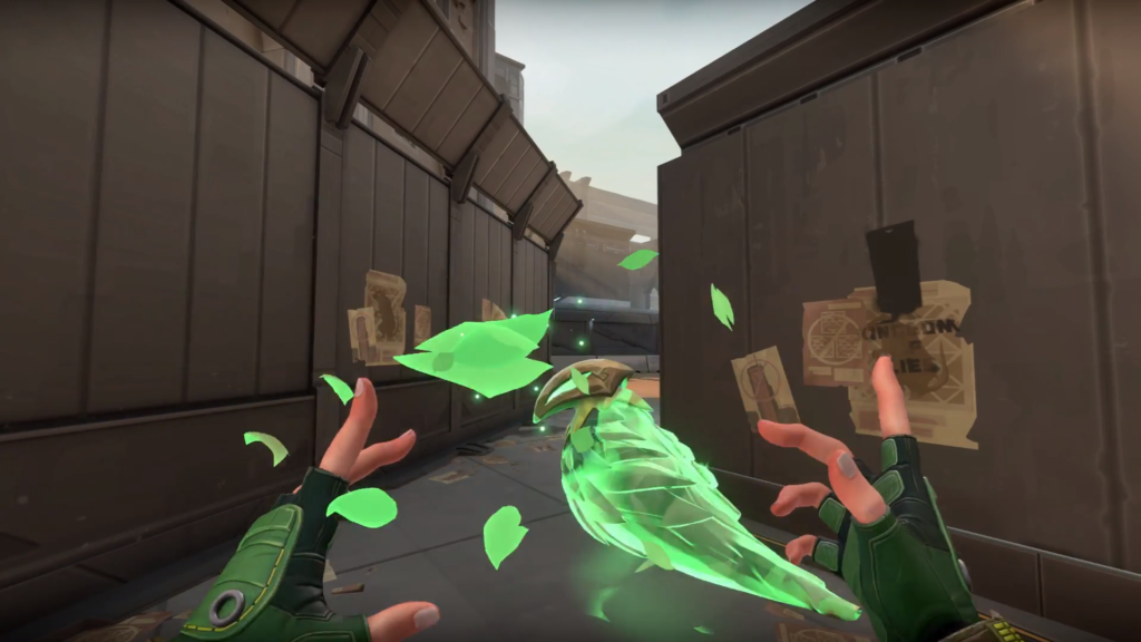 Skye equips a hawk trinket. Fire to send it forward and hold fire to guide the hawk in the direction of your crosshair, similar to Jett’s smokes or Phoenix’s wall. Players can reuse the ability while the hawk is in the air to flash anyone caught in the blind. If an enemy is caught by the flash, the hawk will play a hit-confirm sound.