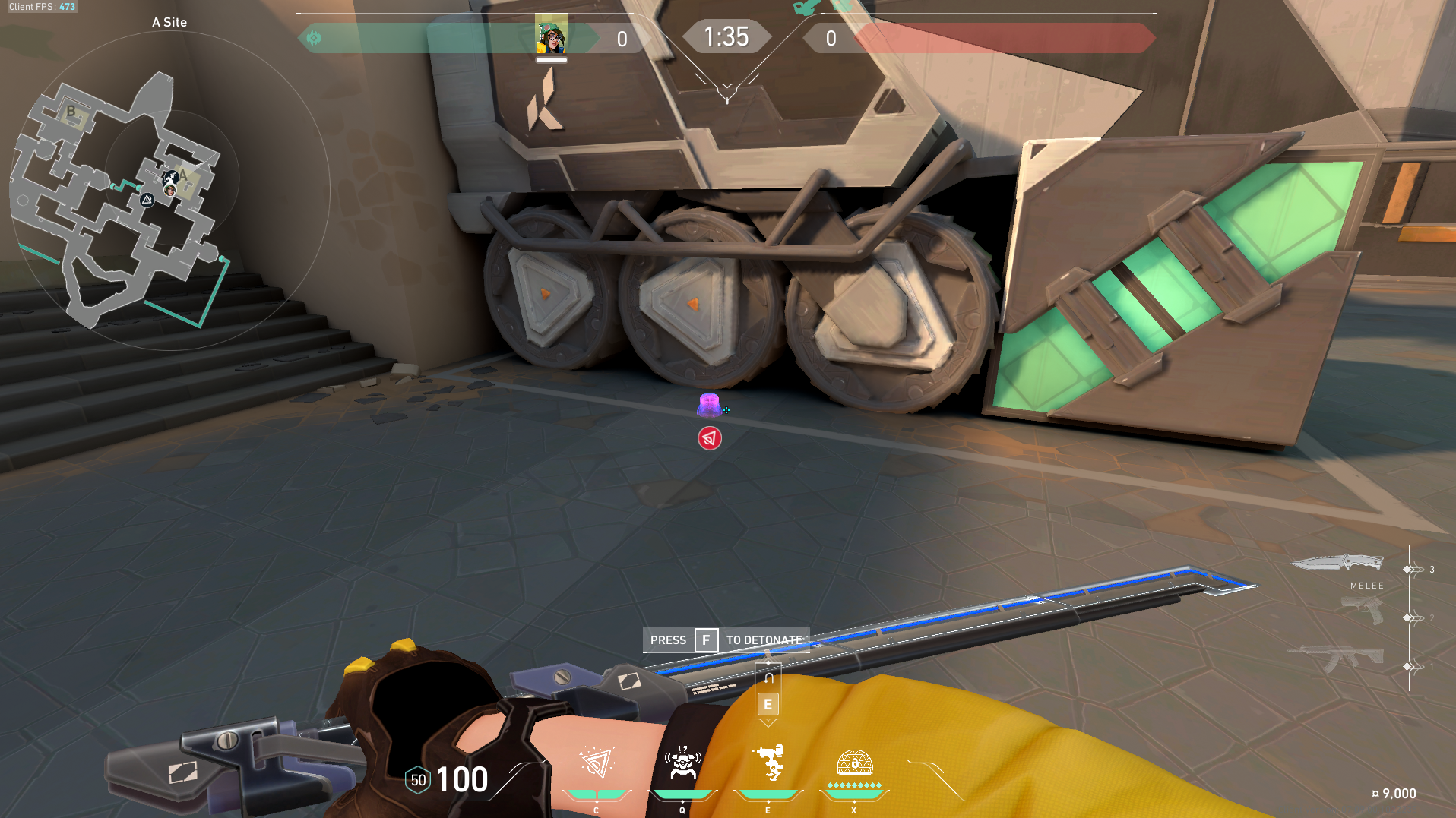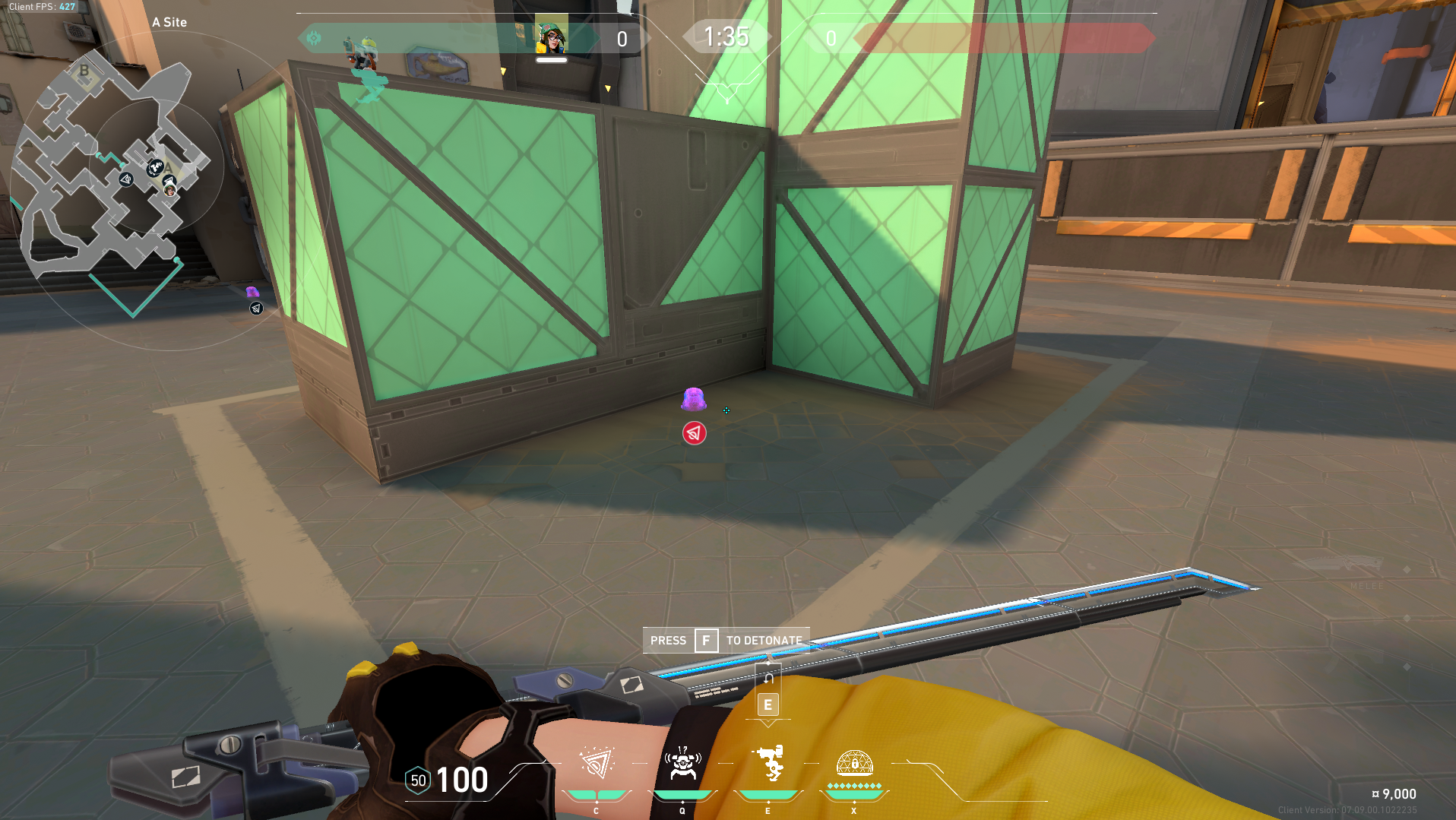 The first spot you can place your turret, Killjoy’s signature ability, is on top of the crate of boxes in the middle of A Site. Usually, Killjoy will benefit from having her turret placed in an elevated spot, since it will cause enemies to have to break their line of sight to any targets in order to shoot the turret first.