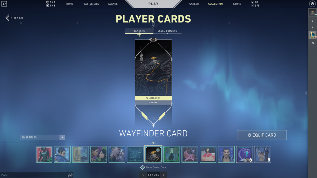 After claiming the item through Prime, the Wayfinder player card should show up in your Collection in VALORANT. Cards are sorted alphabetically, so you’ll have to scroll through all your cards until you find Wayfinder.