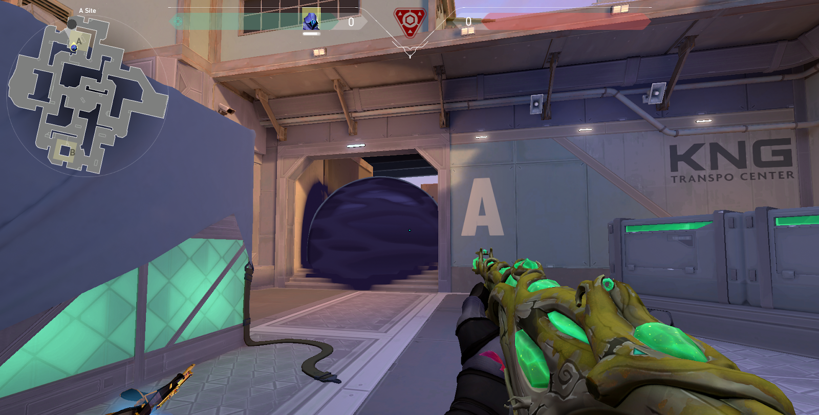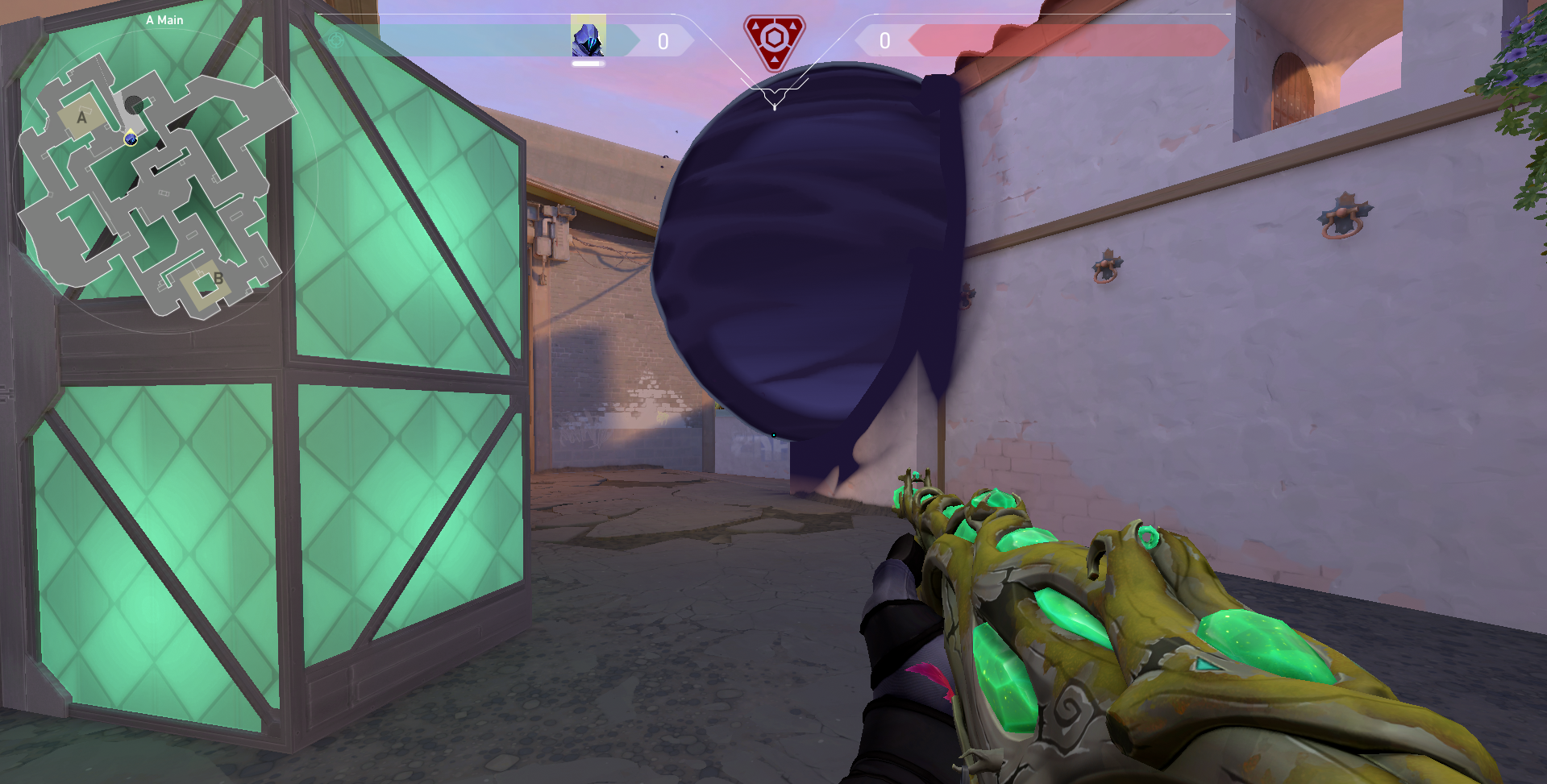 Omen’s smokes are pretty small, so it’s useless smoking deep into A Lobby for more space: it’ll leave nasty gaps on the sides. The same applies to Brimstone and Viper’s smokes. But this isn’t a problem if you play Astra or use Harbor’s Cascade.