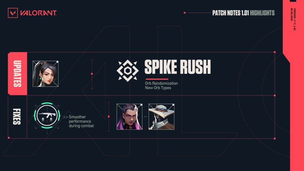Riot Games is going easy on the updates in VALORANT Patch 1.01. The devs are taking it slow and steady, targeting Sage and Spike Rush—the title’s alternative game mode.