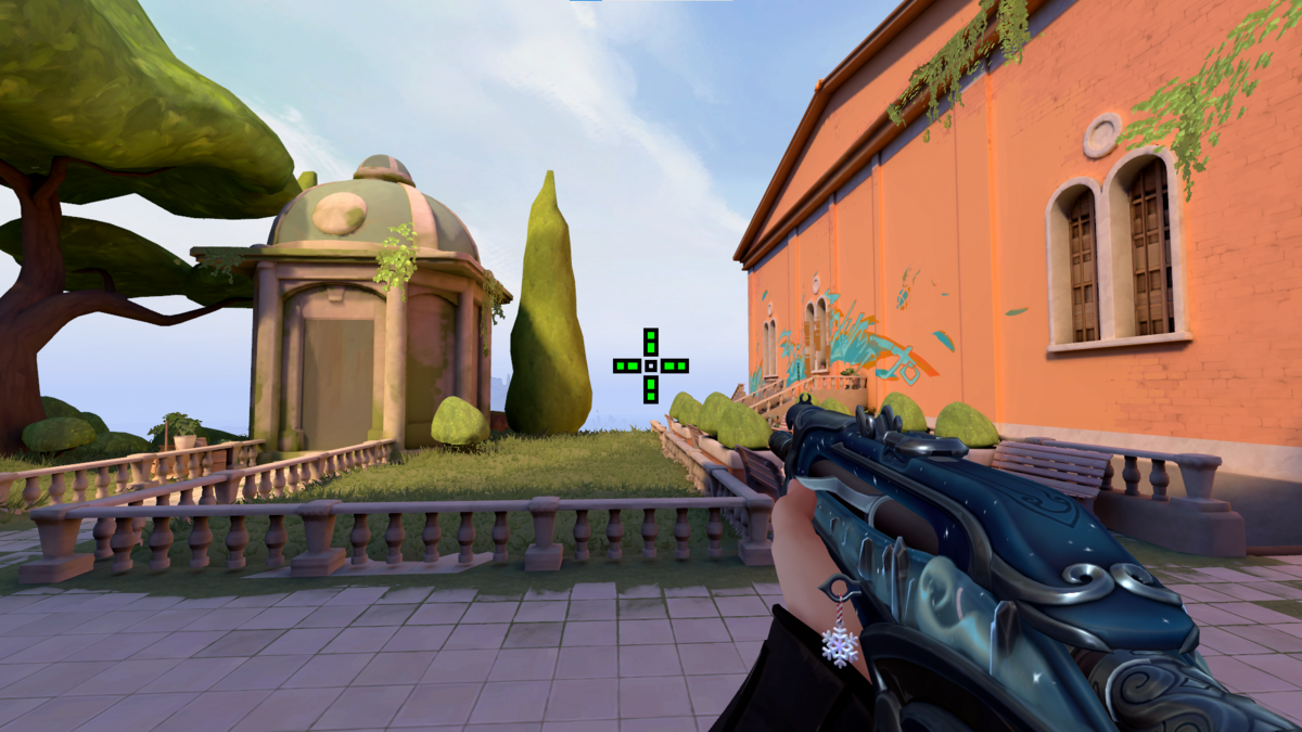 While I agree it’s an incredibly powerful ball, we are not catching ‘mons in VALORANT, are we? The Pokéball crosshair may look cute and land you some great occasional kills, but its design makes it inconsistent to play with. I wouldn’t recommend this reticle—even to my enemies. Just go for a no-drama dot crosshair, and you’ll know what I mean.