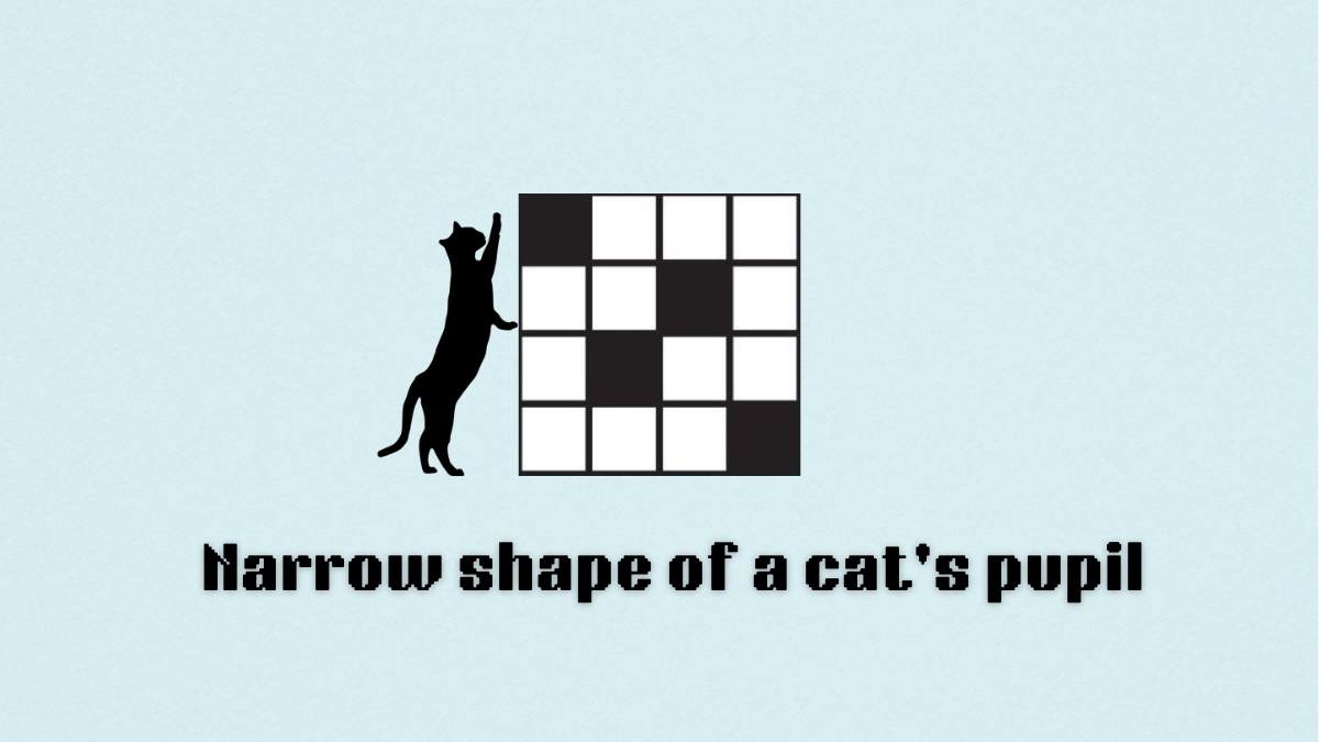 Did you get it? The solution for the “Narrow shape of a cat’s pupil” clue on the Nov. 8 NYT Mini Crossword puzzle is “SLIT.” The pupil is the round opening in the center of the iris. When it’s bright outside, a cat’s pupil narrows into a small slit. This helps them dim the lights and prevent themself from being blinded by the blistering sun.
