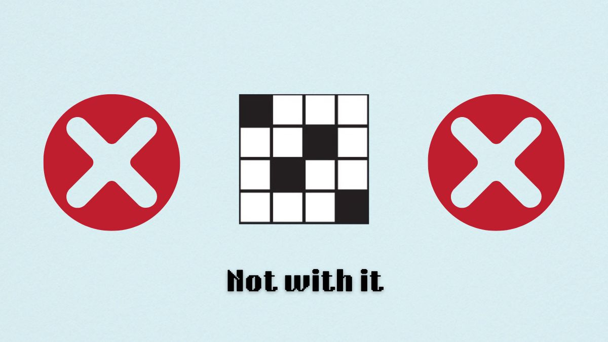 To be honest, I’m “Not with it” on Monday morning or many other times during the week, but this clue takes on a different meaning in the Aug. 27 NYT Mini Crossword.