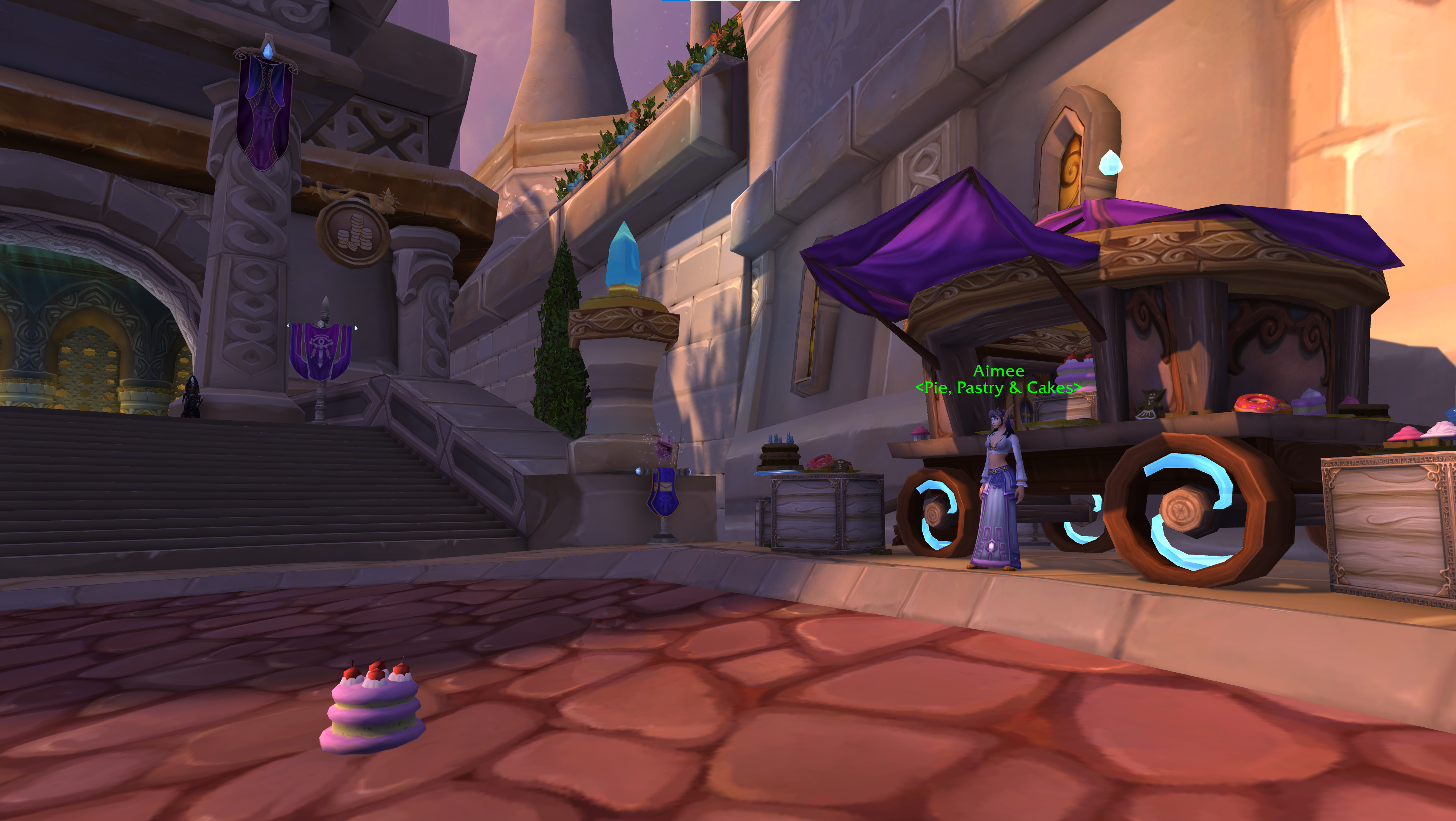 Listed below are the seven desserts you’ll need to purchase in order to finish Bad Example. Some of the sweets you’ll need to acquire in order to get credit for Bad Example are sold by a Blood Elf vendor named Aimee, who stands in front of the bank in Dalaran. Since Aimee is present in both versions of Dalaran in Northrend and on the Broken Isles, it won’t matter how you acquire those treats, as long as you get them from her.