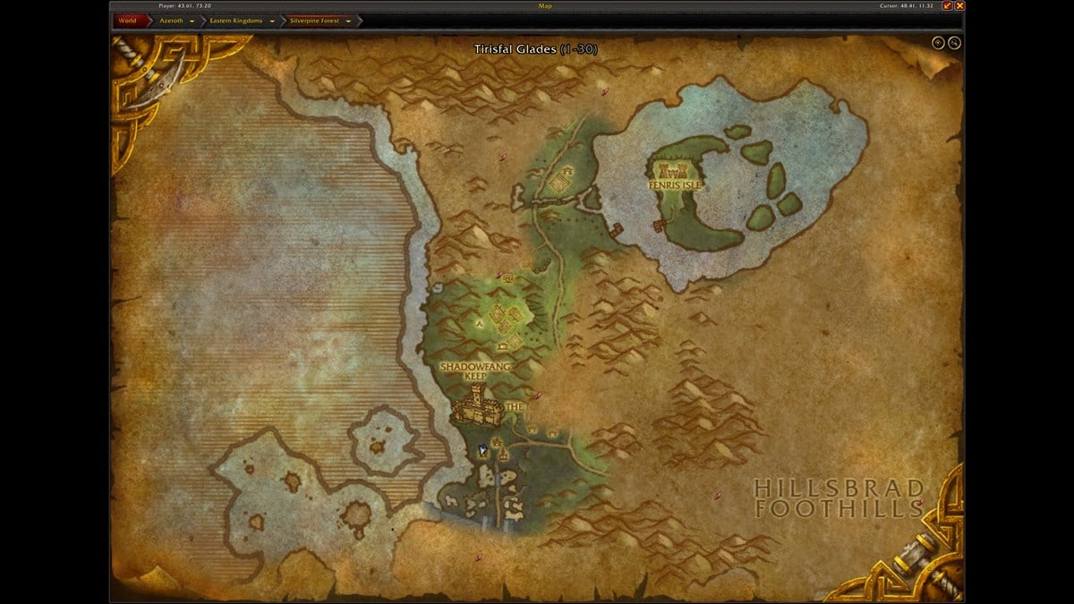 Once you accept the quest, take the portal to Undercity and fly south towards Silverpine Forest. Just south of Shadowfang Keep is Pyrewood village. This is where we meet up with Calia Menethil and Lilian Voss, who will be your guide to Gilneas. You can find them inside one of the houses at 43.73. Talk to her and accept the next quest.
