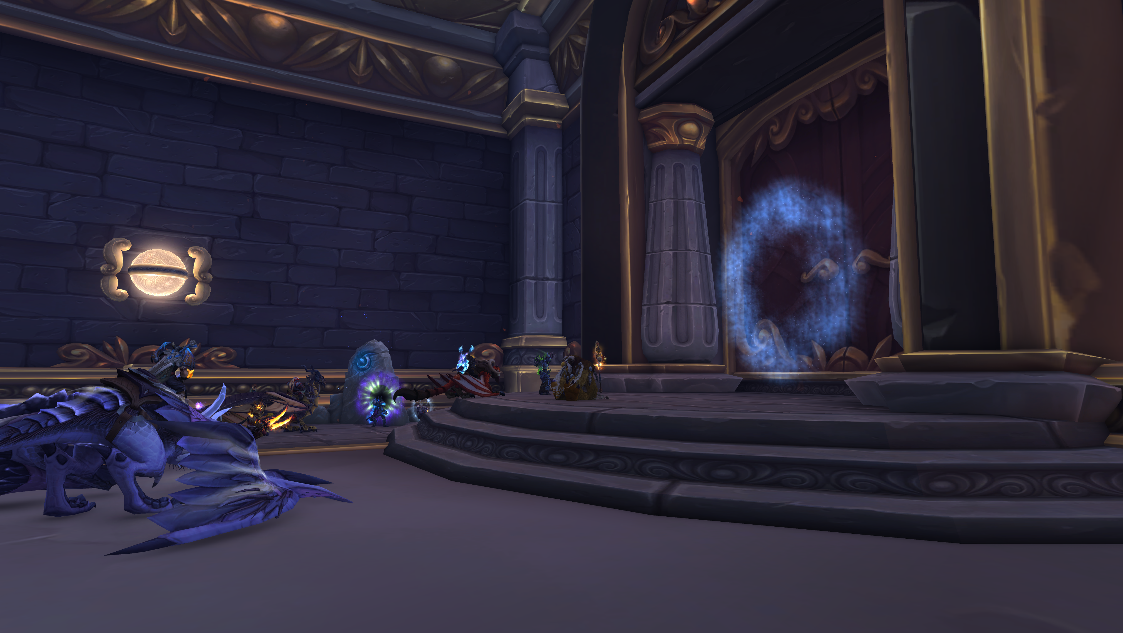 You can easily Dragonride down in a straight line while keeping an eye on the tiered structure until you see the summoning stone for the dungeon. Once you see a mass of people, you’ll know you’re in the right place.