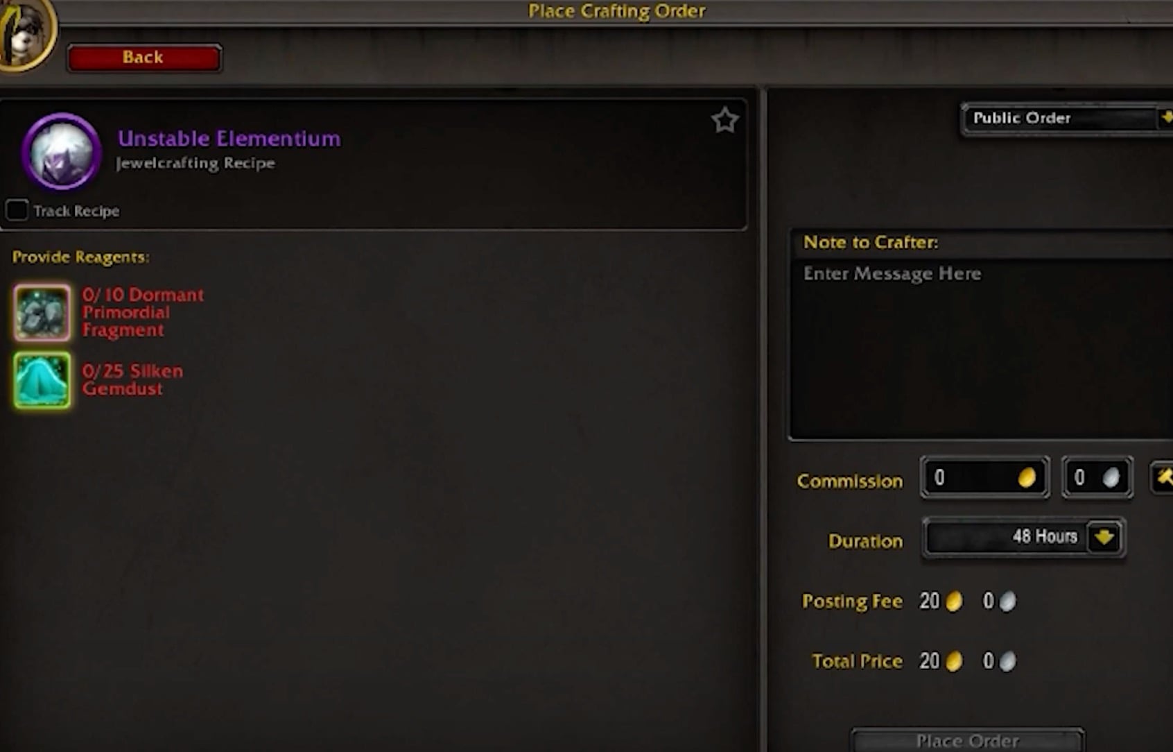 - Players who haven’t skilled their jewelcrafting profession can place Crafting Orders to get their hands on Unstable Elementiums.