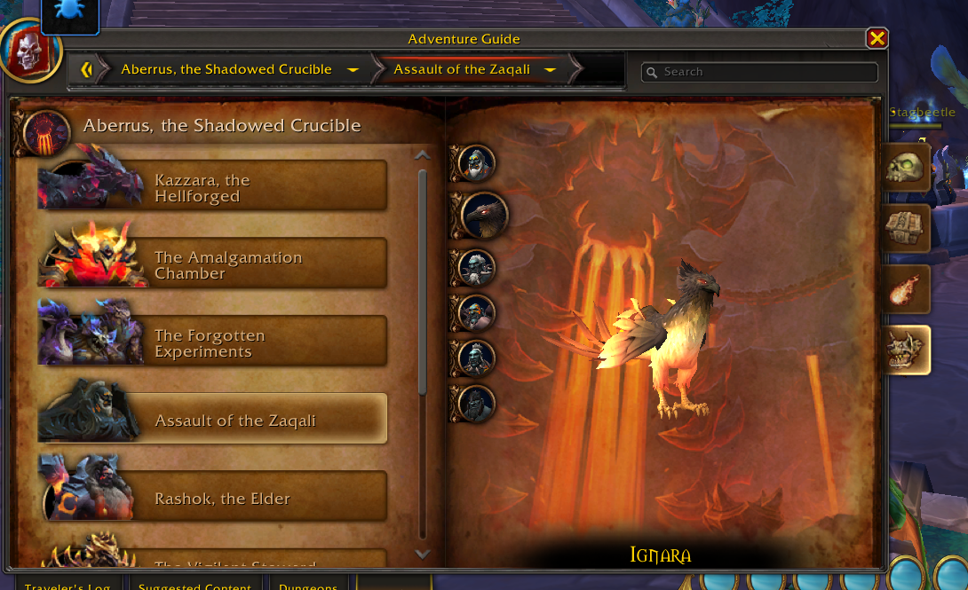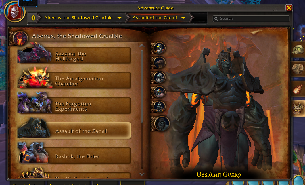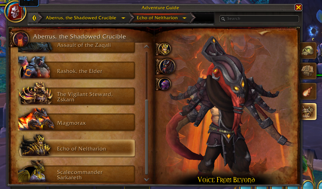 “Long ago, Zskarn was tasked with testing the mettle of Neltharion’s experiments. Only the most powerful would pass muster and keep their lives. The latest visitors to the Shadowed Crucible have attracted his unwavering attention–but his approval will be much harder to earn.”