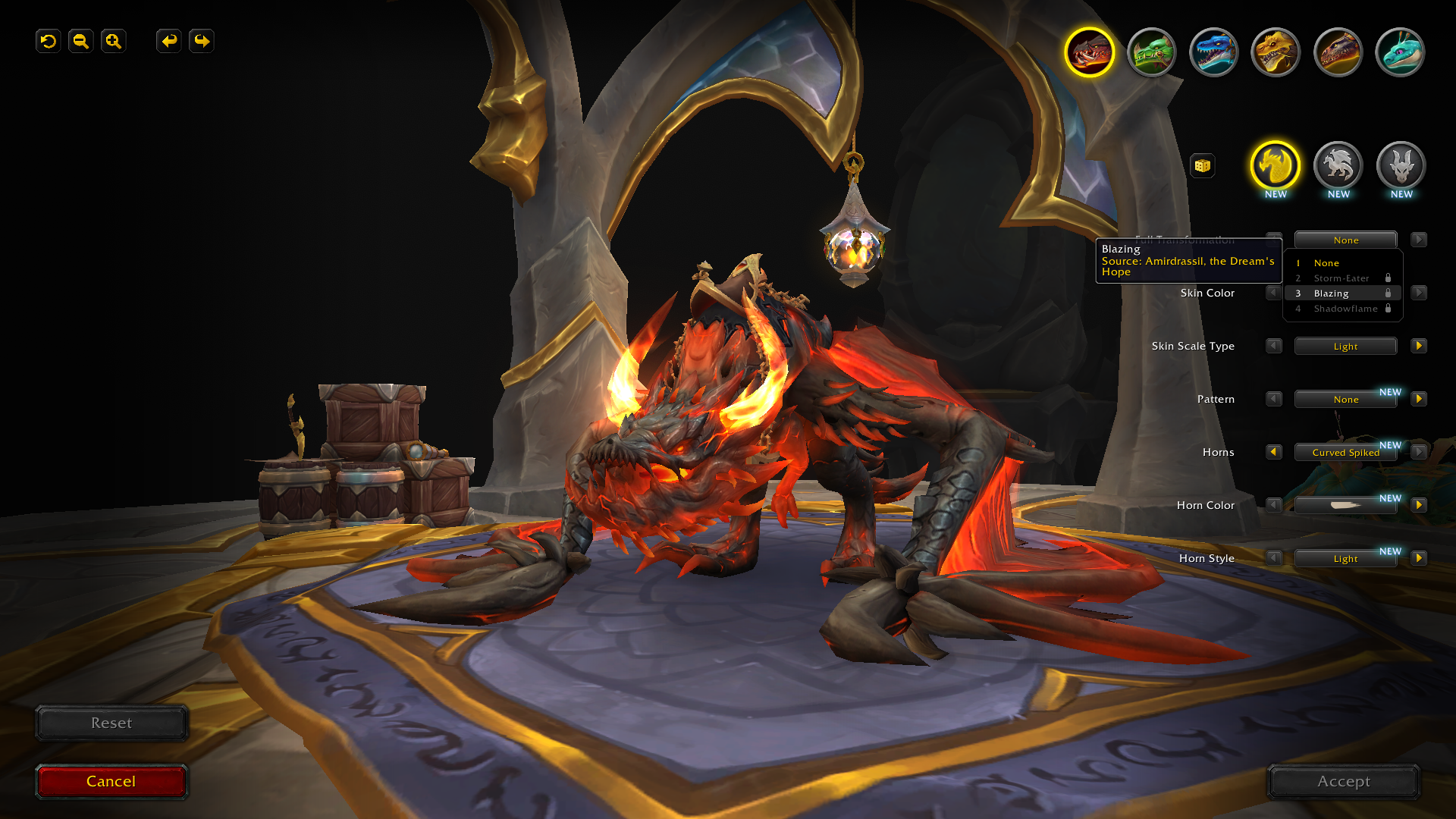 You can get two Dragonriding customizations from Amirdrassil—Renewed Proto-Drake: Embodiment of the Blazing and Renewed Proto-Drake: Embodiment of Shadowflame. Both of these are full-body transformations for the Renewed Proto-Drake, the first Dragonriding drake you unlock in the Waking Shores.