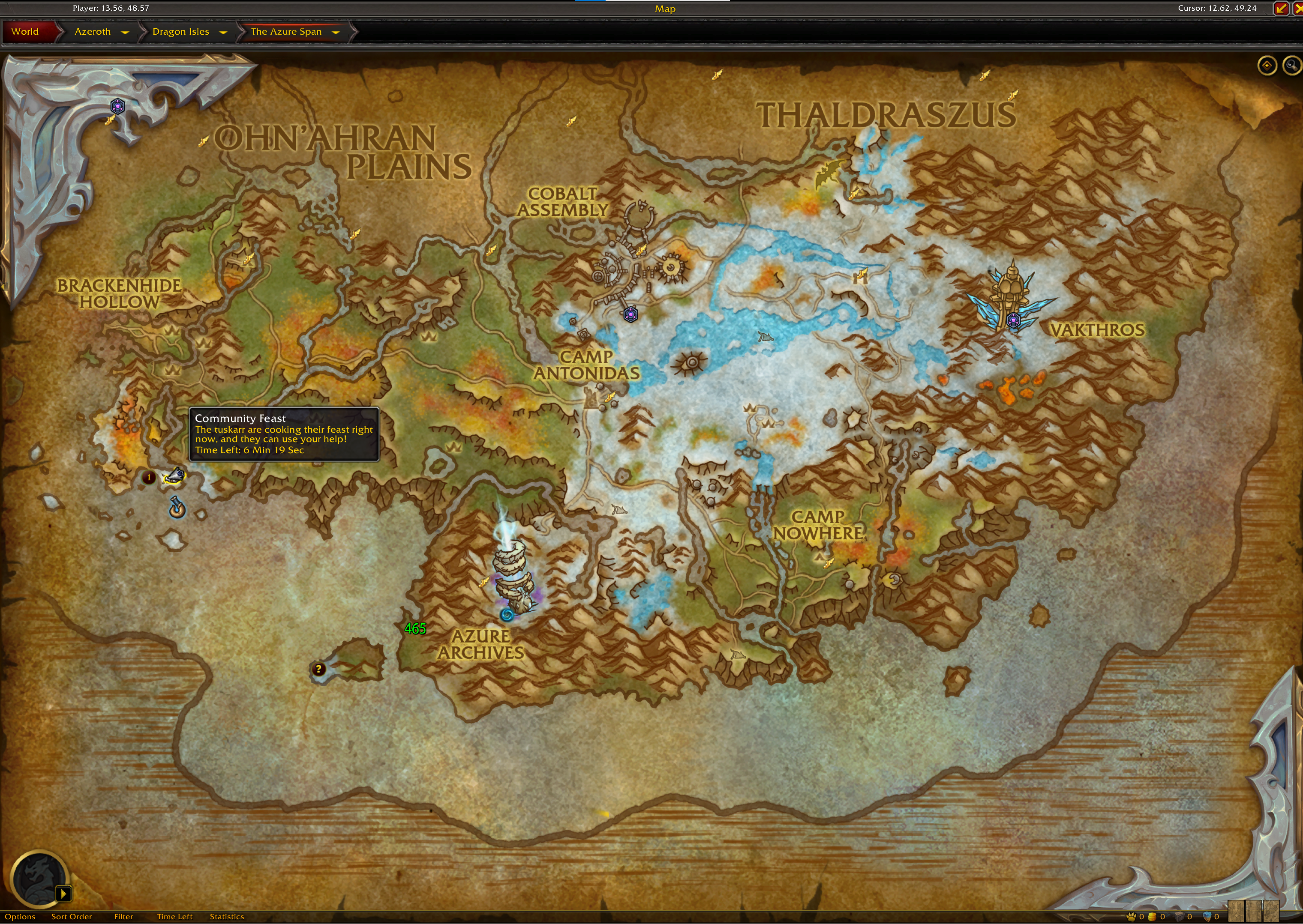 You can always refer to your world map to get an idea of when the Community Feast event is beginning, and don’t worry, it always takes place in the same spot. The Community Feast will always be held at Big Kinook’s pot directly behind the flight master in Iskaara, which can be found in the southwestern corner of the Azure Span.