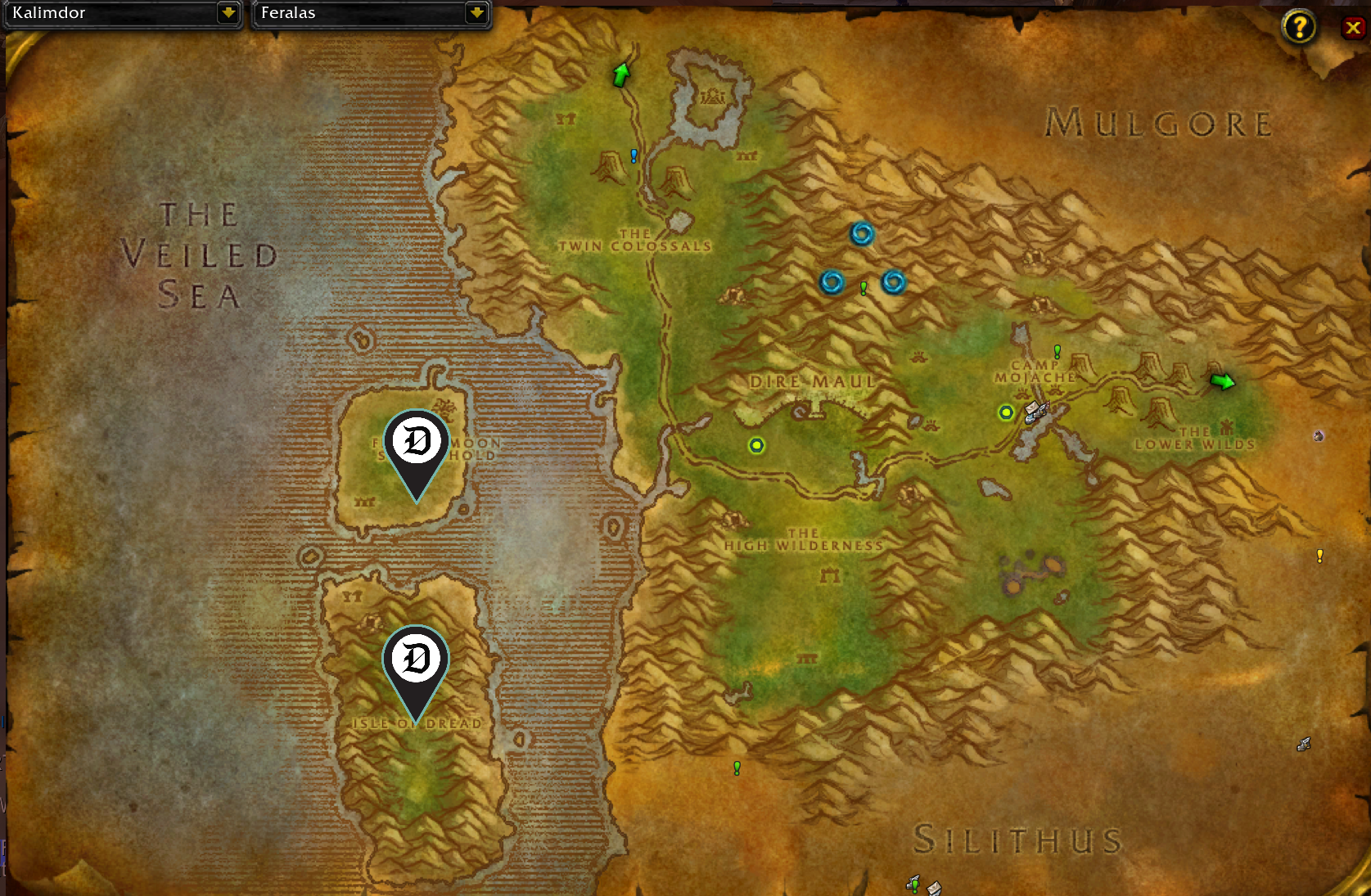 Next, you have to get Spent Voidcore and Mote of Darkness. Spent Voidcore drops from Naga in Feralas, and there are two spots to farm them—Isle of Dread and in the zone south of the Feathermoon Stronghold.