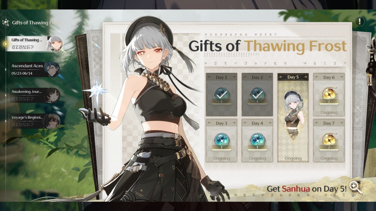 | Daily Check-In | – | You can get four Lustrous Tides and two Radiant Tides by checking in at the Gifts of Thawing Frost event. This event will conclude once you’ve completed it. It’s unclear whether a new daily check-in will replace this one. |