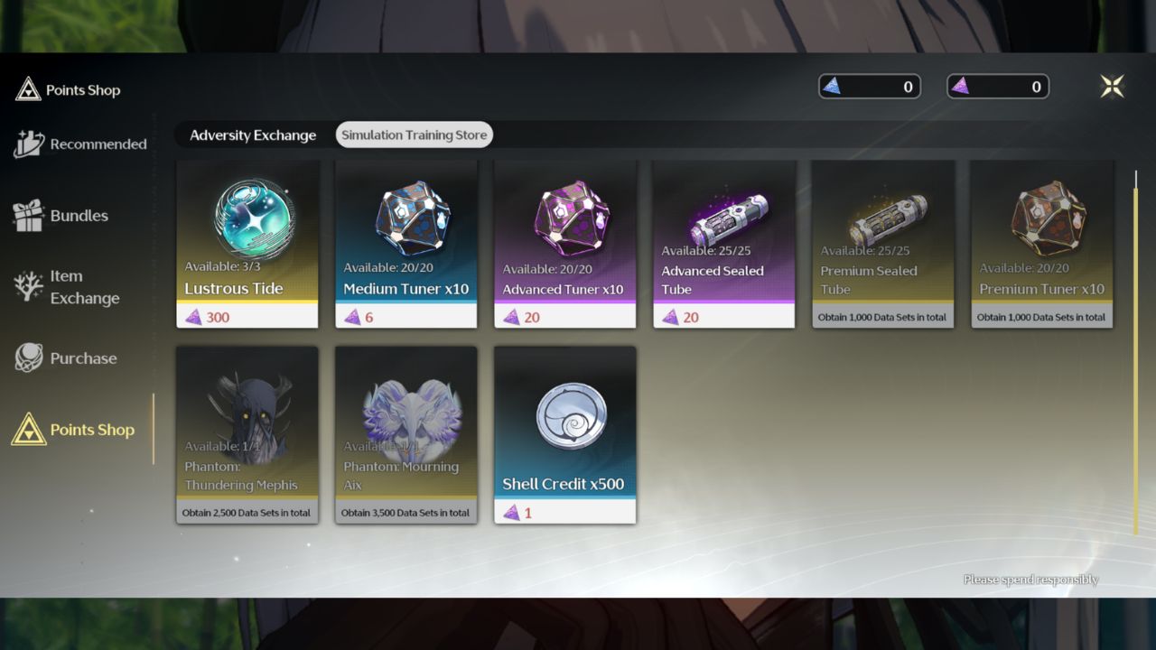 | Simulation Training Store (Points Shop) | You can exchange 300 Data Sets for one Lustrous Tide. | Data Sets can be earned from the Tactical Hologram: Calamity. You can only buy three Lustrous Tides. It’s still being determined whether this will refresh or if you can only make this exchange a total of three times. |