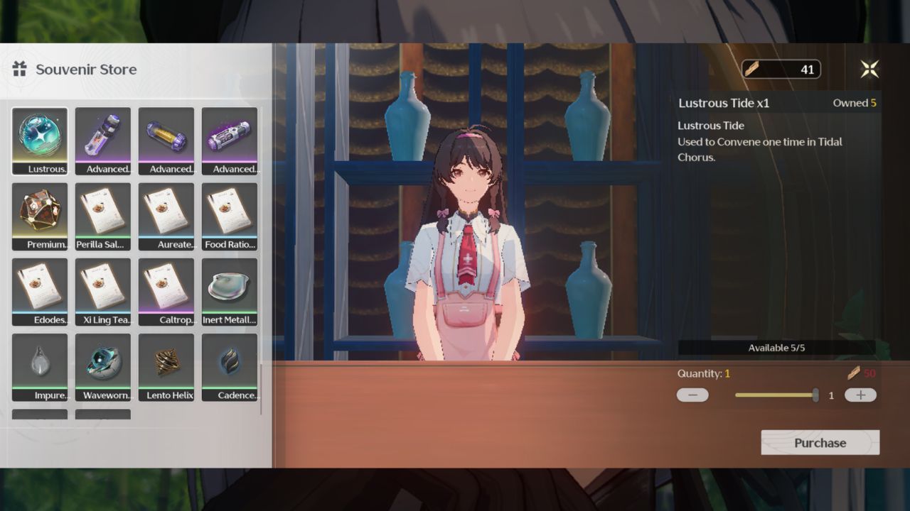 | Tidal Exchange (Astrite) | You can exchange 160 Astrites for one Radiant Tide or Lustrous Tide. | There isn’t a limit on the number of Tides you can exchange for Astrite. Astrite is a premium currency, so getting it can be challenging. But there are farming methods you can use to get more. |
