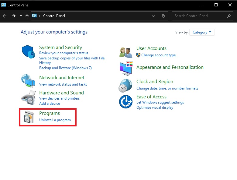- Navigate to Windows’ Control Panel.
