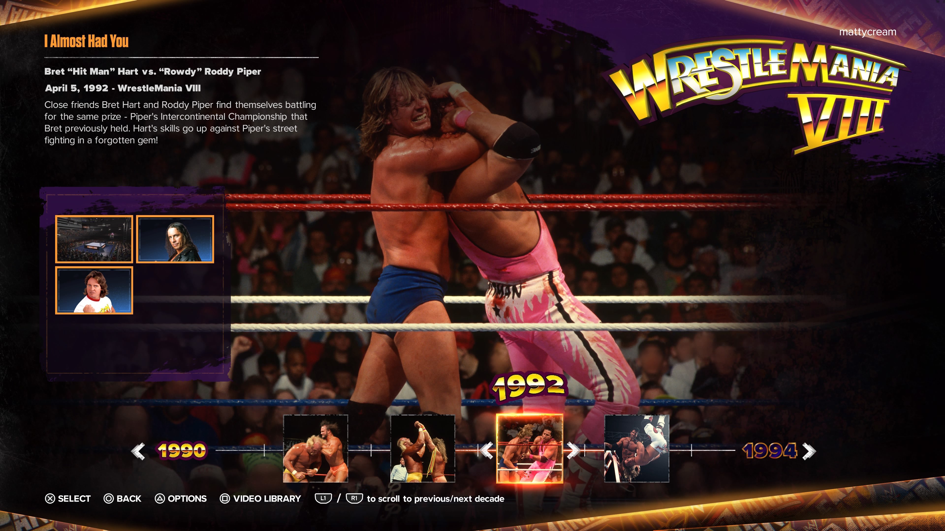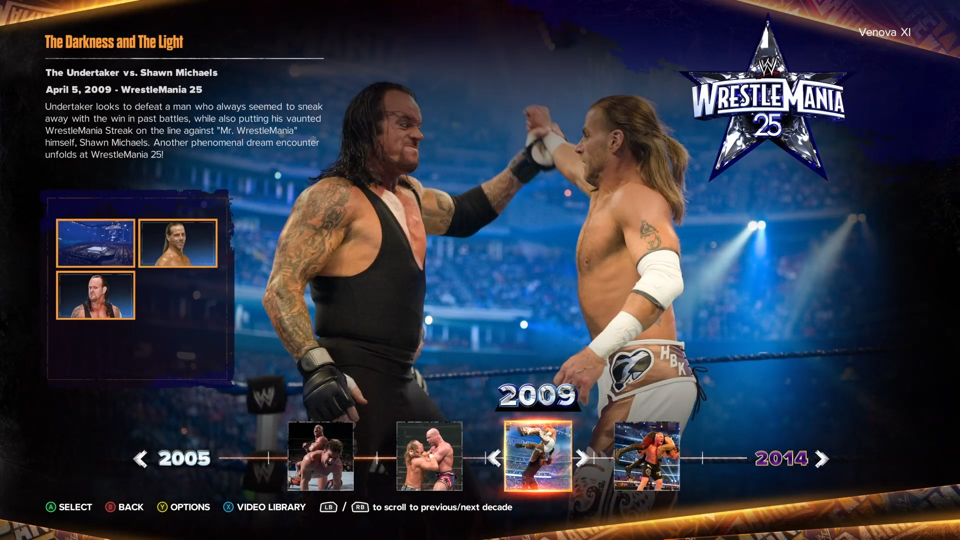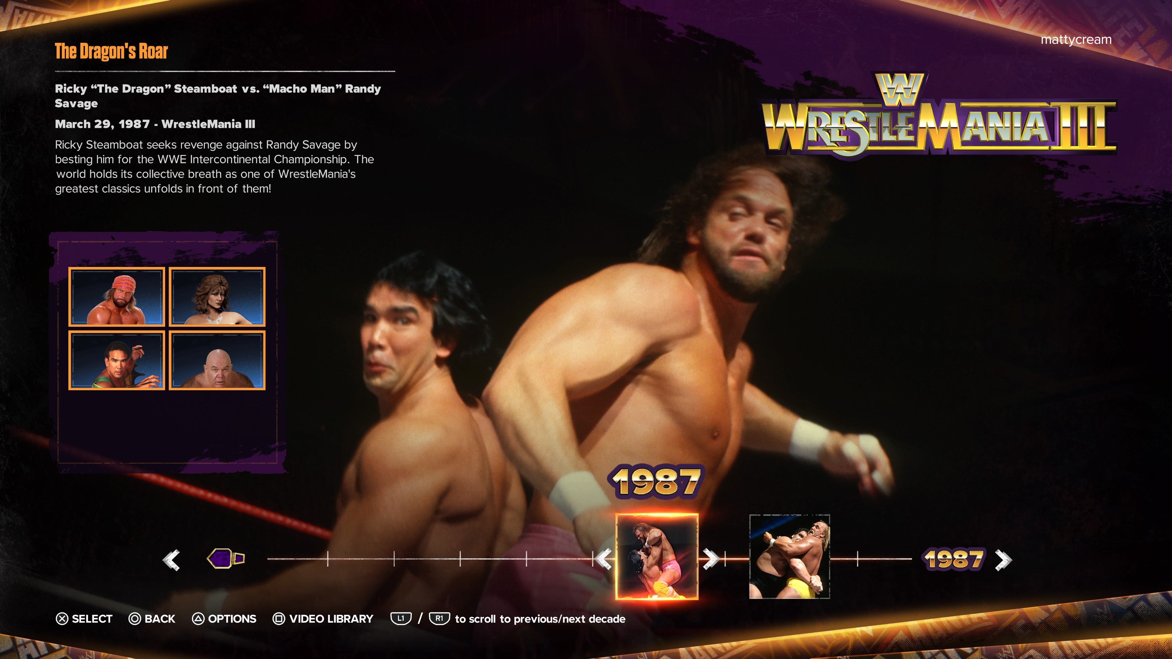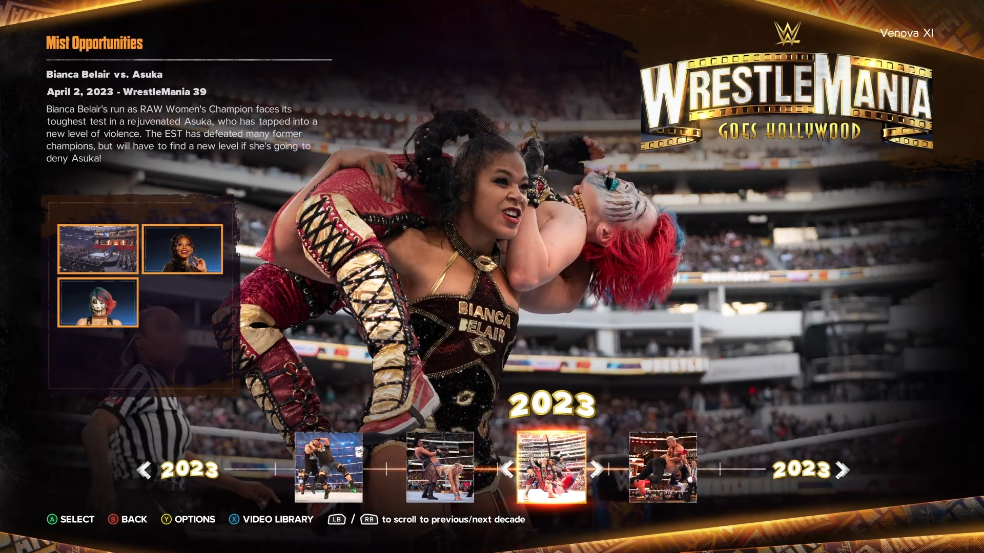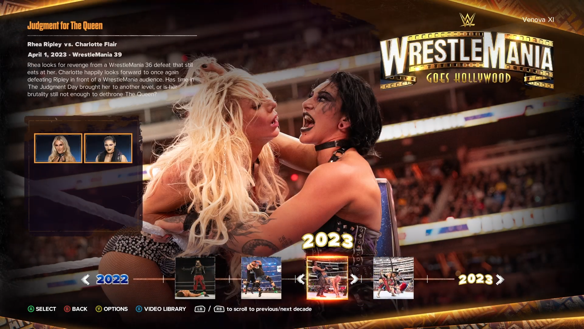 When you select a WWE 2K24 Showcase match, you’ll watch a video featuring commentator Corey Graves explaining the history. After that, you’ll drop into it, where you control one of the wrestlers.
