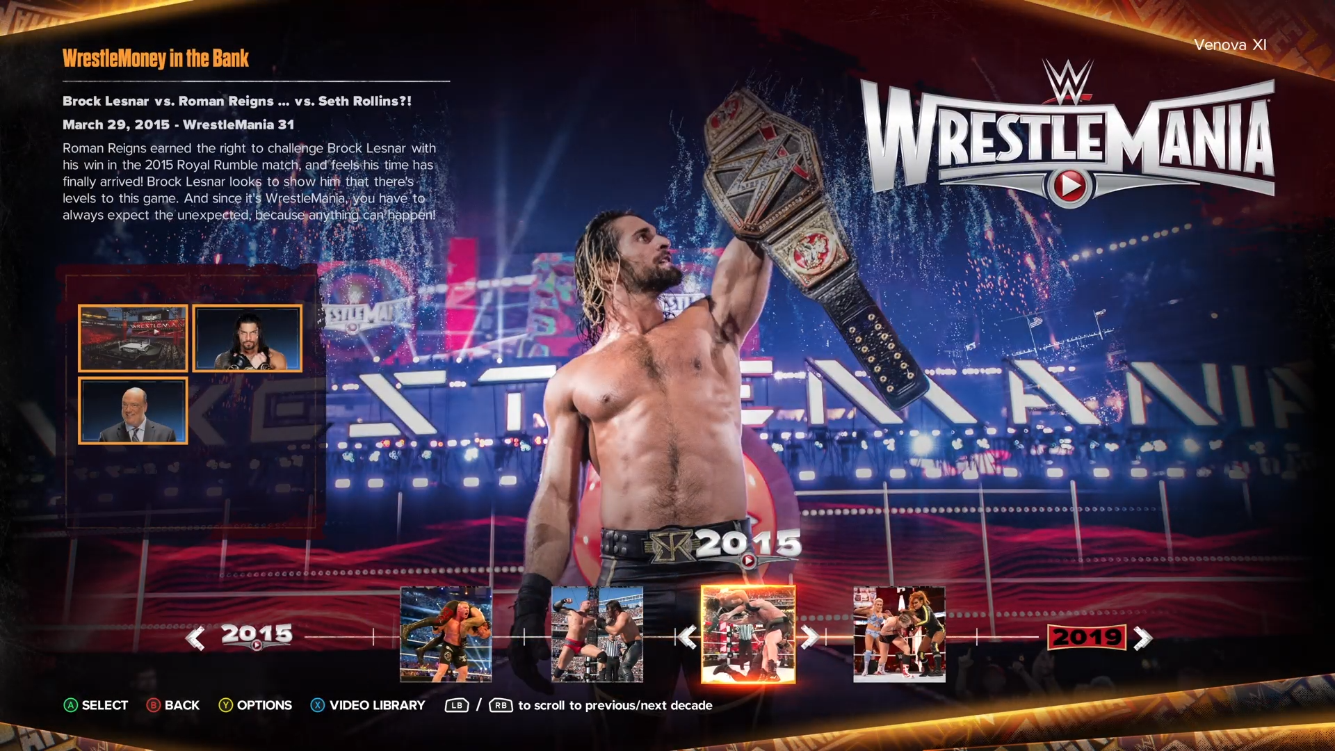 Brock Lesnar vs. Roman Reigns (vs. Seth Rollins): Triple Threat Match for WWE World Heavyweight ChampionshipWrestleMania 31– Roman Reigns ’15