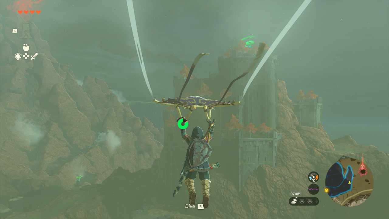 Once you’ve got that last chest, turn around and look at the shrine’s entrance. Paraglide toward that area and ascend up the block you did originally.
