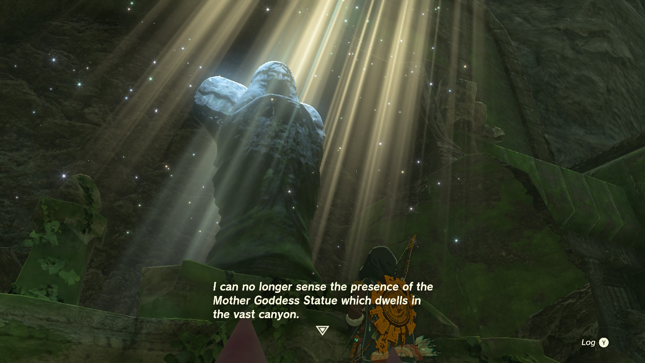 At the Spring of Courage, you’ll find a Goddess Statue. Speaking to this statue automatically starts the “Goddess Statue of Courage” side quest, and the statue will tell you she can no longer hear the Mother Goddess Statue in the vast canyon.