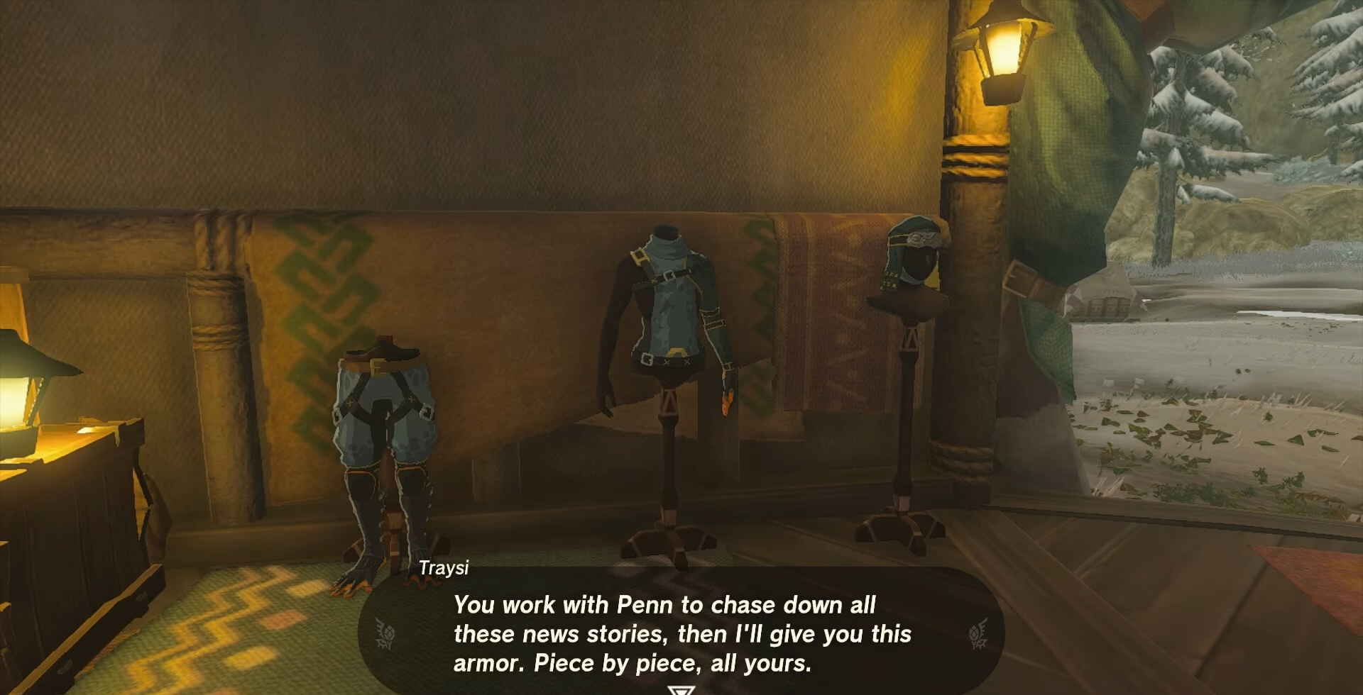 In order to get the Froggy armor, you will need to visit the Lucky Clover Gazette just on the edge of Rito Village. Once here, you will speak with Traysi who will start you on a side quest, “Potential Princess Sightings.”