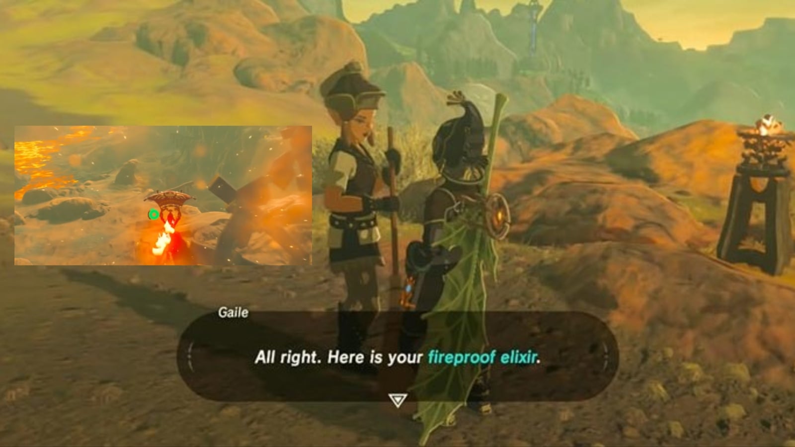 Luckily, players can grab a few protecting elixirs to prevent Link from succumbing to the unbearable heat. They can also collect special fire-resistant armor by completing a side quest on their way to Goron City.