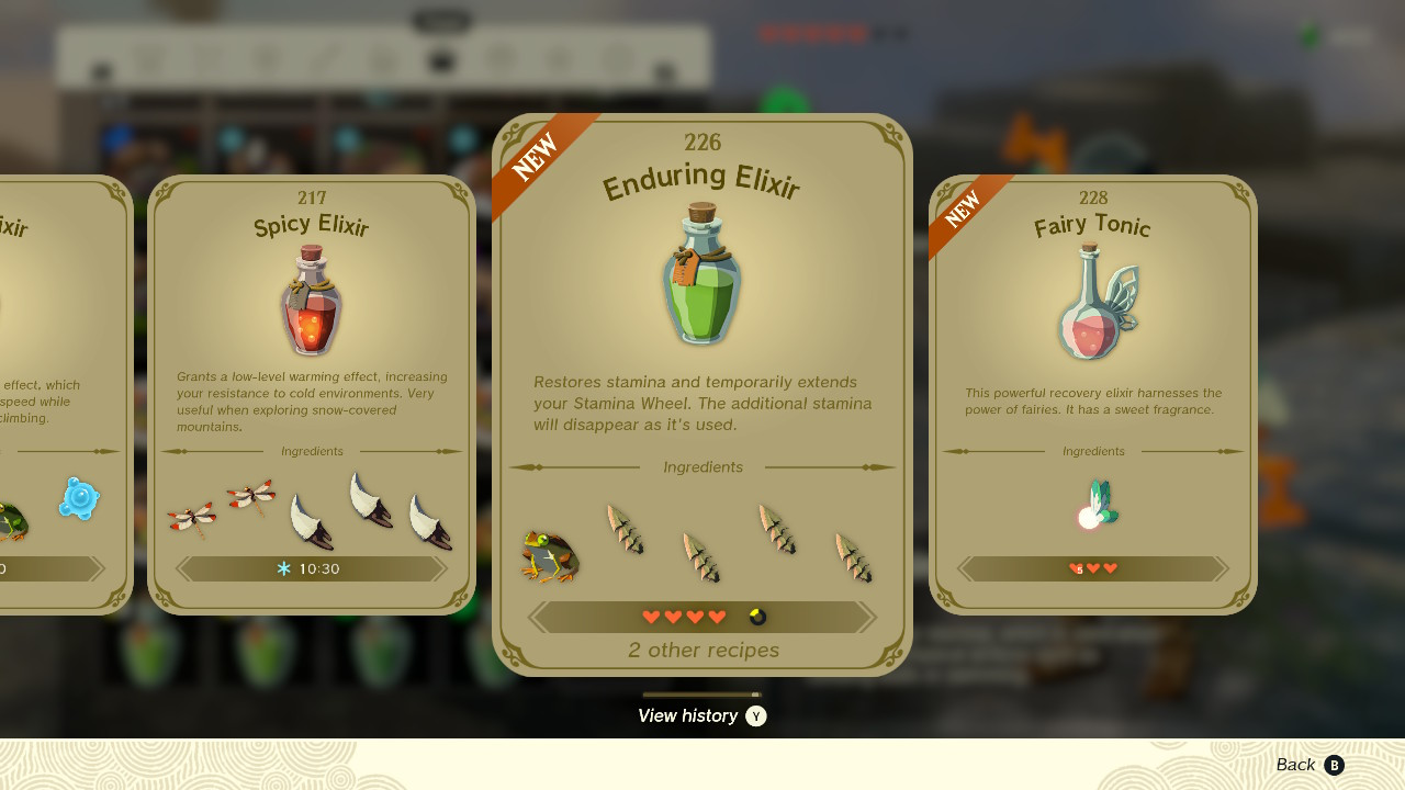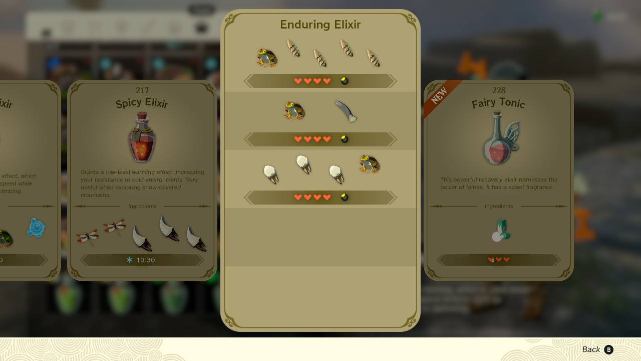 If you know you’ve got a long climb and don’t want to constantly chug your elixirs, you can also brew up a few Enduring Elixirs to increase the capacity of your stamina wheel.