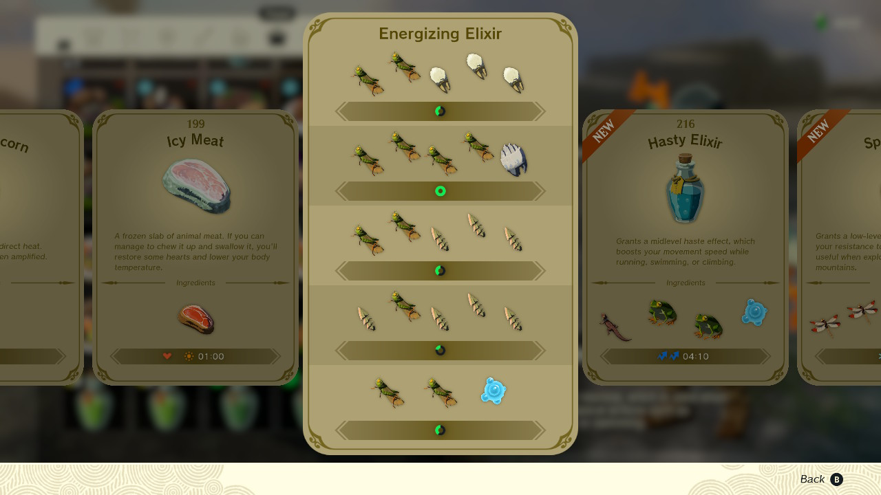 Players can find stamina elixirs all around Hyrule. Some chests and NPCs grant these consumables, but your best bet of acquiring them is making them yourself. Luckily for players, this process is fairly simple. All you’ll need is a couple critters and a few monster parts.