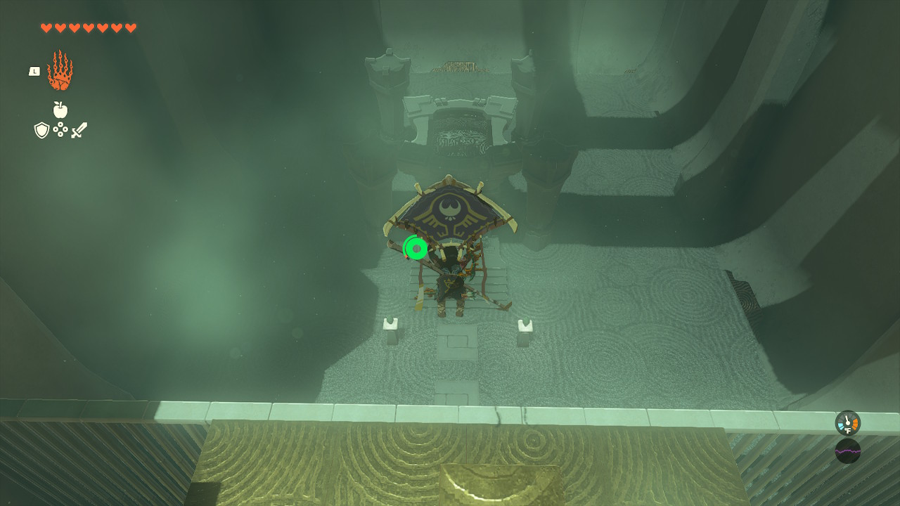 From here, it’s smooth sailing—literally. As the basket rockets into the air, you’ll be launched with it. After you’re tossed above the platform, whip out your paraglider using the X button and you can glide to the Zonai statue which will reward you with a Light of Blessing, which you can use to increase either your health or stamina pool at a Goddess statue.