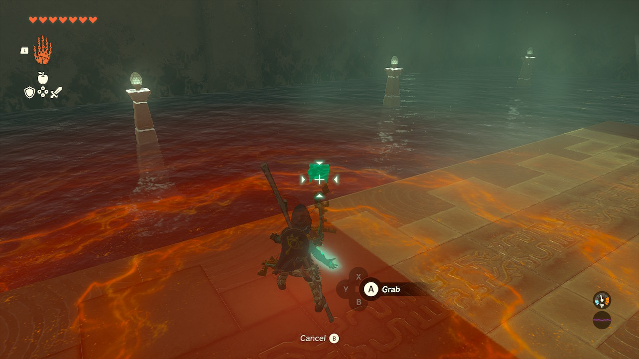 When you enter the Jonsau Shrine, you’ll see a giant yellow ball in a pool of water with a glowing target on an overhang above it. It’s clear you’ll need to hit this target with the ball, but Ultrahand only allows you to carry objects so far. You’ll need to find a way to get the ball past Ultrahand’s height limit.